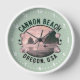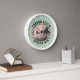 El reloj de la pared es elegante y ofrece vistas al mar de Cannon Beach, OR, de color rosa y de estilo retro. Cara del reloj blanco sobre fondo verde pastel
