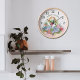 Este reloj de pared de "Flowers Basket" incluye una foto acuarela con un nombre personalizado.