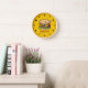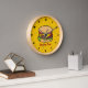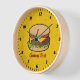 Ilustracion personalizado de Cheeseburger sobre comida chatarra amarilla sin costura. Texto personalizado.
