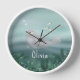 Este bonito diseño de reloj infantil incluye un ilustracion de focas oceánicas con peces, algas y un fondo de olas azules. También hay espacio disponible las 24 horas para añadirle su propia personalización: un nombre en una tipografía caprichosa. El azul verde azulado perfecto bajo el mar para cualquier niño o amante del océano, ideal para la habitación de su hijo o para su niñera.