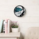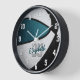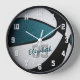 Este reloj de pared de baloncesto de colores de equipo es adecuado para un chica o un niño y cuenta con un baloncesto con paneles de color verde azulado, blanco y negro alternados y números de la cara del reloj - personalizable con el nombre del jugador en un tipo de letra "autógrafa" que recubre el número jersey del atleta - por katz_d_zynes
