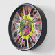 Este divertido y colorido reloj de collage de fotos pintadas con empate muestra 13 de tus fotos familiares favoritas en forma de círculo, con una foto en el centro y 12 alrededor, coincidiendo con las horas de reloj. Cada foto tiene un borde de negro, y también hay números negros con pequeños iconos de sol entre ellos. El fondo está hecho de tintes retro con movimientos de arena morada, rosa y roja que se desvanecen en los bordes, cambiando lentamente a amarillo y naranja cerca del centro. Utilice las plantillas fáciles para agregar sus imágenes. Todas las fotos llenarán automáticamente los marcos. (Las fotos de muestra son todas cuadradas). Tenga en cuenta que es probable que se recorten partes de sus fotos para crear las formas. Ver más divertidos collages en nuestra tienda: https://www.zazzle.com/store/picturecollage