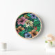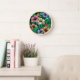Flores tropicales de colores vivos con la cara del reloj numerada.