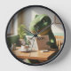 reloj de pared con diseño dinosaurio desayunando