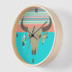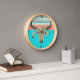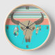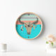 Reloj de pared inspirado en el suroeste hecho en turquesa, coral, rubor y menta. Gráficos de un cráneo de toro decorado con plumas, y rayas decoran el reloj. Personalice para agregar su propio texto.