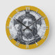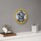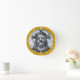 Reloj de pared: Reloj de arte cristiano vintage con mosaico antiguo de Jesucristo de color blanco y negro sobre fondo dorado. Jesús está usando una corona de espinas, con cruz simbólica en el fondo y halo "santo resplandor" alrededor de su cabeza. Fotografía original/Arte/Diseño de work4dream.