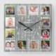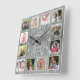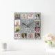 Reloj Cuadrado 12 Collage de fotos Nombre Familia Rústica Madera