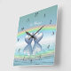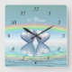 Un reloj de pared con mi diseño de dos corazones de platino flotando en el agua bajo un arcoíris. El texto personalizable dice "70 Años".