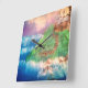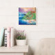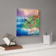 Oil panel painting of a small house built on a large rock on the Pacific ocean during a storm. The little house may get washed away during the storm.