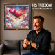This stunning square wall clock features a breathtaking digital illustration of two large, vibrant pink and red hearts floating like hot air balloons. The hearts are tethered with delicate, swirling lines and set against a magical, ethereal sky filled with fluffy white clouds and a colorful nebula of blue, orange, and purple. Smaller hearts in various pastel shades drift through the air, accompanied by shimmering stardust and whimsical light effects. The artwork is housed within a modern black wood-grain frame with bold white numeric markers for easy timekeeping. This functional home accessory is an ideal decorative piece for bedrooms, living rooms, or as a sophisticated Valentine Day gift. Its dreamlike atmosphere and rich, multi-colored palette provide a serene and romantic focal point for any interior wall.