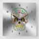 Reloj Cuadrado Acero inoxidable gris brillante y cráneo floral