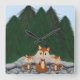 Presentamos a la familia de zorros. Mamá y sus dos bebés se relajan en una pila de rocas cerca del río. Basado en una pieza de arte original de © One Artsy Momma.
