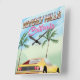 Poster de vacaciones de Beverly Hills, Beverly Hills California de 1980, viajes o vacaciones con un auto deportivo americano amarillo.