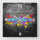 Reloj Cuadrado Alfie con letras de graffiti con ladrillos grises