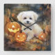 Reloj Cuadrado Algodón De Tulear De Halloween Con Calabazas Asust