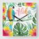 Reloj Cuadrado Aloha Tropical Parrot Hibiscus Palm Square Wall Cl