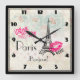 Reloj Cuadrado Ama París con la Torre Eiffel en patrón de época