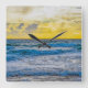 Reloj Cuadrado Amanecer amarillo sobre el mar azul