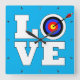 Un hermoso y único reloj cuadrado de pared para los arqueros y cazadores de arco, entrenadores e instructores de tiro al arco, y fans, con LOVE impreso en negrita y blanco y un tiro con arco con una flecha que atraviesa el ojo de toro en lugar de O. Puede dejar el color de fondo tal como está (azul claro), o hacer clic en el botón [Personalizar] y editar el color de fondo a cualquier color que desee. Estos relojes se ven muy bien en el dormitorio de un arquero o cazador de arco, en la oficina de un entrenador de tiro al arco, o en instalaciones relacionadas con tiro con arco como un campo de tiro con arco o un campo de práctica de tiro con arco.