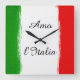 Reloj Cuadrado Amo Italia/ Bandera de Italia. Texto