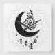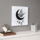 A bold crescent moon anchors the design, surrounded by a delicate mandala pattern and hanging lanterns and stars. The monochrome palette on a dark textured background gives the piece a luxurious, gallery-style feel that fits perfectly in contemporary interiors.