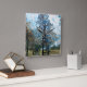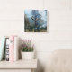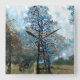 Diseño artístico otoñal de un abeto y una persona que disfruta de paz y tranquilidad.