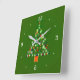 Reloj de Navidades verdes con un árbol colorido con burbujas en el centro. Este diseño tradicional también tiene números blancos.Disponible en formas cuadradas y redondeadas.