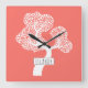 Reloj Cuadrado Árbol de círculo blanco abstracto y nombre coral v