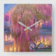 Reloj Cuadrado Árbol guiado rosado al atardecer junto al estanque