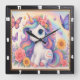 Reloj Cuadrado Arcoíris Unicornio Flor Niño