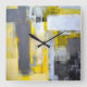 Reloj Cuadrado Arte abstracto "ocupado, ocupado" gris y amarillo