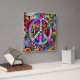 El diseño presenta un gráfico multicolor, símbolo de paz, dibujos de doodle.