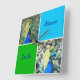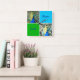 Arte de pavo real con Aqua y, plazas verdes Una foto de un pavo real colorido inspiró este reloj de pared de cuadrados azul y verde acuático. Vea patrones coincidentes y colores sólidos de los que elegir. Por celeste@khoncepts.com