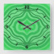 Reloj Cuadrado Arte geométrico de líneas verdes onduladas tropica