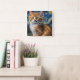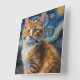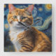 Reloj Cuadrado Arte nocturno estrellado con un gato