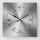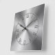 Reloj de pared de acero inoxidable de diseño metálico brillante gris plateado. Versión de los números romanos. No es un verdadero acero, sino una imagen que parece acero.