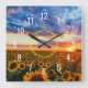 Reloj Cuadrado Atardecer con belleza de girasoles - Rústico exter