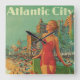 Ilustracion de época Estados Unidos de América, arte de afiches de viaje para Atlantic City, Nueva Jersey a través del ferrocarril de Pennsylvania, que incluye una hermosa mujer con un pin rubio en un traje de baño con una toalla mirando al sol en la playa durante el verano. La gente se está divirtiendo en la playa y en el paseo marítimo. Atlantic City es una ciudad turística conocida por sus juegos de azar, sus tiendas y su gastronomía.