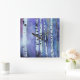 Aurora entre los pájaros. Los tonos de aurora se asoman a través de los troncos de pajarita, lo que aporta un resplandor encantador a esta escena invernal. El buen equilibrio entre abstracción y realismo hace de esta pieza un llamativo comienzo de conversación.