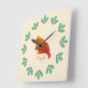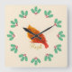 Ave real roja y bayas huecas en el reloj de pared de fondo beige claro. ¡Este reloj es un regalo maravilloso!
