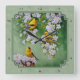 Reloj Cuadrado Aves de oro y flores verdes