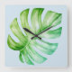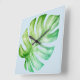 Reloj Cuadrado Azul Tropical Botánico Verde de la hoja Monstera