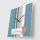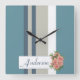 Reloj Cuadrado Azul Verde azulado moderno y floral a rayas de Tan