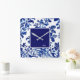 Reloj Cuadrado azul vintage Hermosas flores de jardín