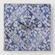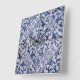 Reloj Cuadrado Baldosas portuguesas - Azulejo Floral azul y blanc