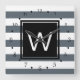 Espesa rayas blancas moderno reloj de pared con estampado con números negros y letra monograma.