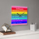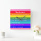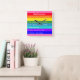 Reloj de pared con rayas de arcoiris divertidas con amables pistas sobre cómo mantener limpio el baño de la comunidad. Los clientes pueden cambiar el texto. Por celeste@khoncepts.com
