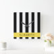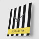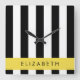 Reloj Cuadrado Bandas en blanco y negro, rayas, líneas, nombre