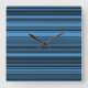 Reloj de pared cuadrado de franjas azules negras