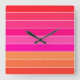 Reloj Cuadrado Bandas rojas, rosadas y Naranjas